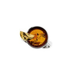 Wisiorek srebrny, pozłacany z bursztynem - Ginkgo - liść miłorzębu