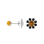 Kolczyki srebrne z bursztynem - róża , kwiat