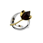 Wisiorek srebrny, pozłacany z bursztynem - Ginkgo - liść miłorzębu
