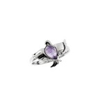 Pierścionek srebrny z bursztynem - Ginkgo - liść miłorzębu