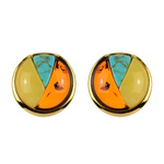 Kolczyki srebrne z bursztynem i turkusem Tulipan