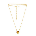 Naszyjnik srebrny, pozłacany z bursztynem - Ginkgo - liść miłorzębu