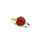 Należy do rodziny kwarców chalcedonowych o czerwono-brązowym kolorze, który jest wynikiem obecności tlenku żelaza. W starożytnym Rzymie używny był do produkcji pieczęci, gdyż wosk nie przyklejał się do kamienia. W Starożytnym Egipcie mumie ozdabiano karneolami, symbolizującymi siłę Boga Słońca, a Taj Mahal w Indiach, kultowy pomnik miłości, został ozdobiony tysiącami karneolowych kamieni.Uznawany za"Kamień Odwagi", silnie wpływa na naszą aktywność we wszystkich dziedzinach życia,uwalnia nasz apetyt na życie. Motywuje do robienia "więcej" i "lepiej". Poprawia koncentrację i pobudza kreatywność. W S&A używamy tego pochodzącego z Brazylii.