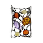 Wisiorek srebrny z bursztynem i kwarcem