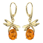 Kolczyki srebrne z bursztynem- ważka