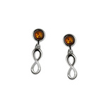 Kolczyki srebrne z bursztynem - nieskończoność
